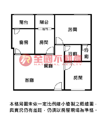 ※本格局圖係未依實際比例繪製之概繪圖。其比例、座向、格局、形狀等,仍須以房屋現場為準。
