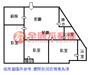 ※本格局圖係未依實際比例繪製之概繪圖。其比例、座向、格局、形狀等,仍須以房屋現場為準。