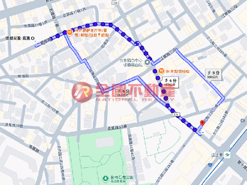 捷運江子翠站約450公尺,依Google步行約6分鐘