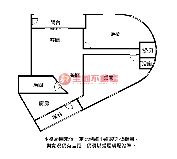 ※本格局圖係未依實際比例繪製之概繪圖。其比例、座向、格局、形狀等,仍須以房屋現場為準。
