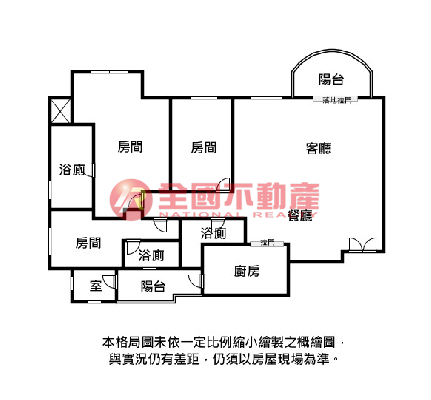 ※本格局圖係未依實際比例繪製之概繪圖。其比例、座向、格局、形狀等,仍須以房屋現場為準。