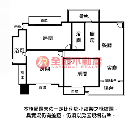 ※本格局圖係未依實際比例繪製之概繪圖。其比例、座向、格局、形狀等,仍須以房屋現場為準。
