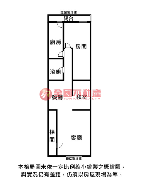 ※本格局圖係未依實際比例繪製之概繪圖。其比例、座向、格局、形狀等,仍須以房屋現場為準。