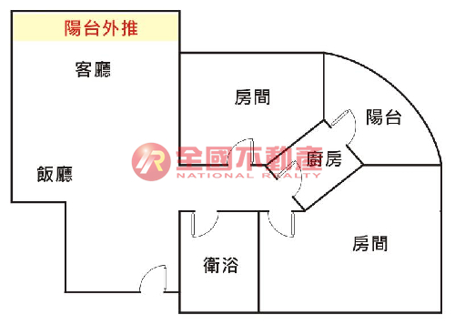 ※本格局圖係未依實際比例繪製之概繪圖。其比例、座向、格局、形狀等,仍須以房屋現場為準。