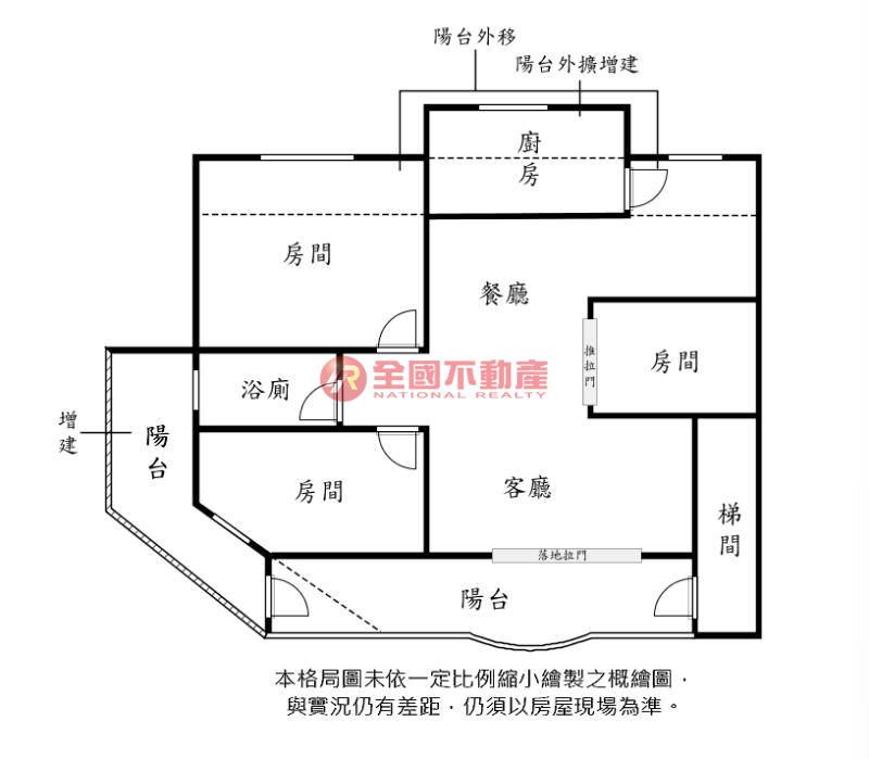 ※本格局圖係未依實際比例繪製之概繪圖。其比例、座向、格局、形狀等,仍須以房屋現場為準。