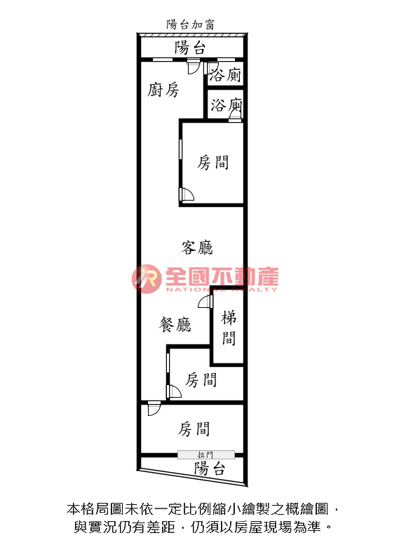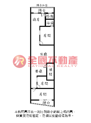 ※本格局圖係未依實際比例繪製之概繪圖。其比例、座向、格局、形狀等,仍須以房屋現場為準。