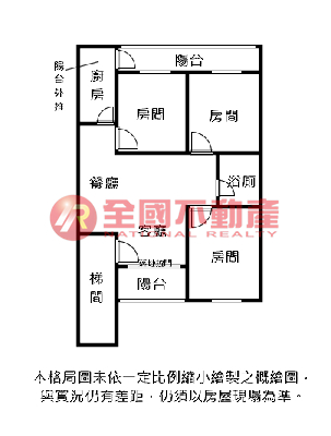 ※本格局圖係未依實際比例繪製之概繪圖。其比例、座向、格局、形狀等,仍須以房屋現場為準。