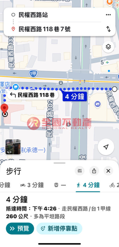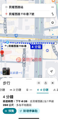 捷運民權西路站約260公尺,依Google步行約4分鐘;