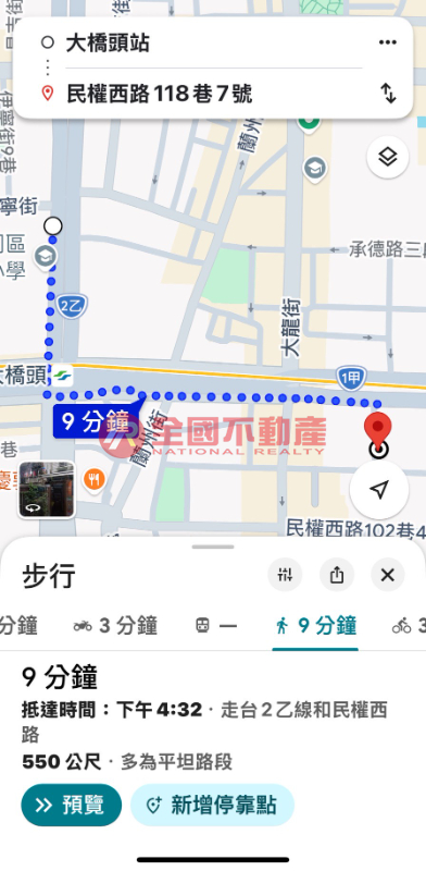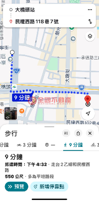 捷運大橋頭站約550公尺,依Google步行約9分鐘