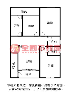 ※本格局圖係未依實際比例繪製之概繪圖。其比例、座向、格局、形狀等,仍須以房屋現場為準。